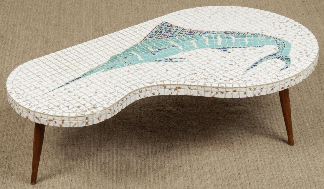 Mid-Century Mosaic Tile "Swordfish" Cocktail Table