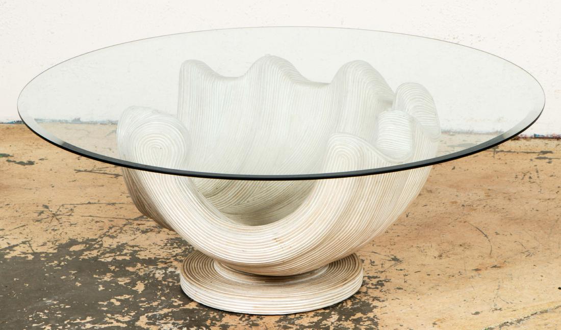 Mid Century Shell Table with Glass Top
