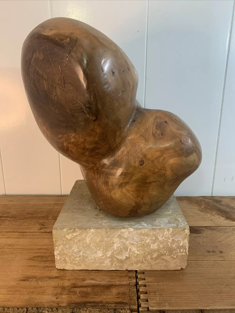 Mid-Century Solid Elm Abstract Sculpture
