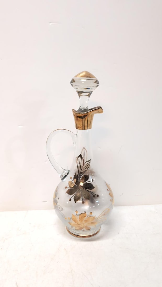 Vintage Estate Hand Painted Floral Glass Liquor/ Wine Decanter