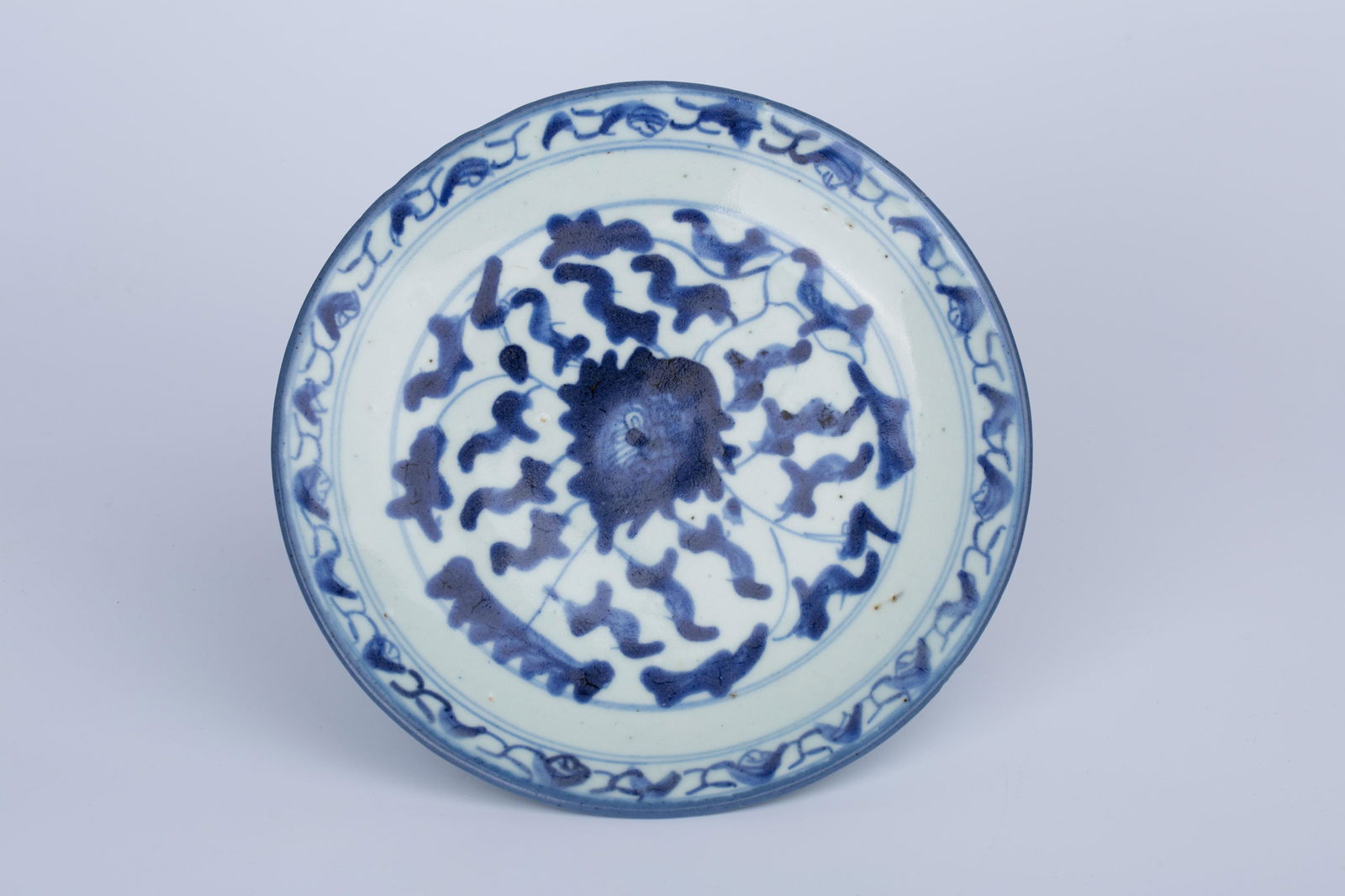 MID QING DYNASTY BLUE WHITE PLATE