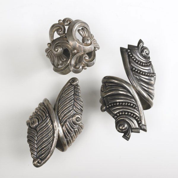 MIDCENTURY MEXICAN SILVER Three large silver cuffs