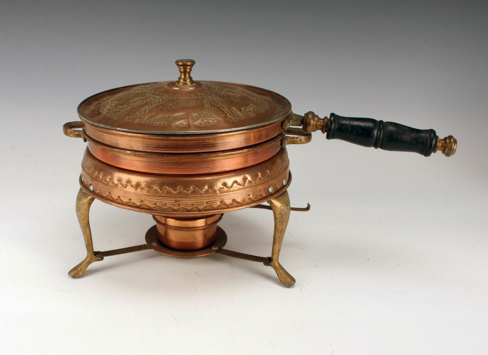 LOT OF TWO COPPERWARE PIECES WITH BRASS HANDLESMar 07, 2026Vintage Copper Assortment, Various Mfgs6 days LeftAntique Russian Imperial Brass Samovar and TrayMar 01, 2026Hand Forged English Copper and Brass Handled Coal Scuttle w/ Hammered Copper Jardiniere/CauldronMar 16, 2026(2) COPPER CHAFFING DISH & FIGURAL MOUNTED SAMOVAR / HOT WATER URN4 days LeftVintage Brass Copper and Aluminum Chafing Dishes with Wooden Handles 4 PiecesFeb 23, 2026(5) COPPER & CERAMIC COOKWARE, SWISS SAUCEPANS & BAIN-MARIE BOILER4 days Left(4) COPPER & BRASS KITCHENWARE, LADLES, PITCHER & BRAZIER4 days LeftAntique English Brass Oil Lamp – Union Metal Works, c.1910Antique Copper & Brass Oil LampVintage Chinese Gilt Gold Copper Incense BurnerCopper and Brass Kettle, c.1930Mid-Century Vintage Copper Chafing Dish Set with Brass StandMar 04, 2026Portuguese Copper Fondue Pot Set w/ Stand & BurnerMar 05, 2026Tiffany & Co Mixed Metals Sterling Silver Chafing Dish with Underplate1 day LeftJoseph Heinrichs Copper Bronze Lobster Pot with 3-D Lobsters and Ebony FinialsFeb 27, 2026