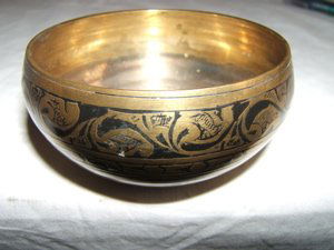 SoldANTIQUE SYRIAN DAMASCUS ARABIC SILVER INLAID BOWLA small antique Islamic Middle Eastern Syrian Damascus mixed metals brass over cooper and silver inlaid bowl. The exterior of the bowl is adorned with chased and engraved traditional designs, foliage,See Sold Price