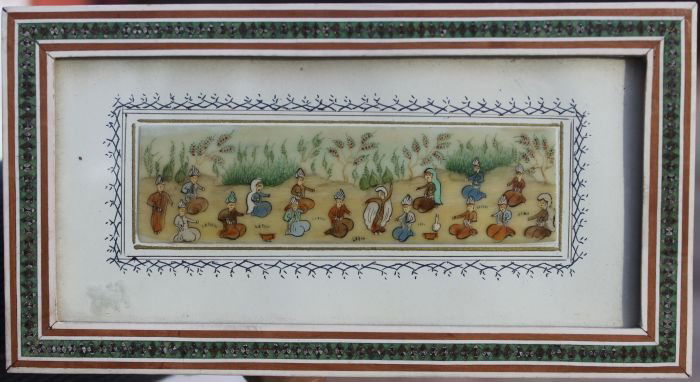 Middle Eastern multi figural painting on ivory in a