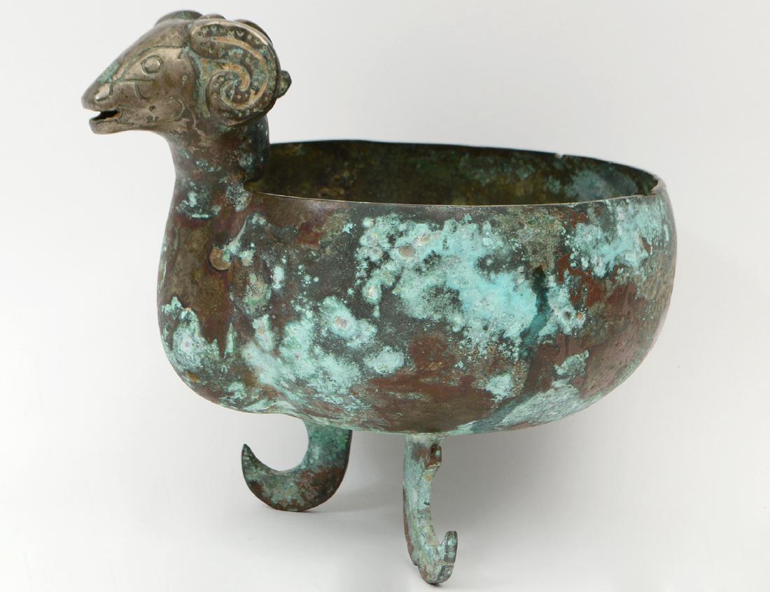 MIDDLE EASTERN SILVERED METAL RAM’S-HEAD BOWL
