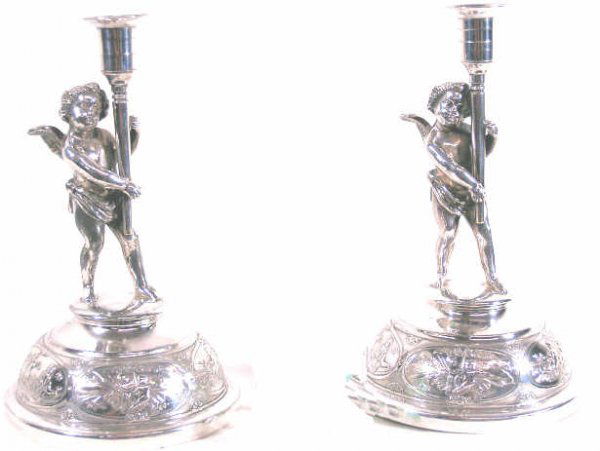 MIDDLETOWN SILVERPLATE FIGURAL CHERUB CANDLESTICKS