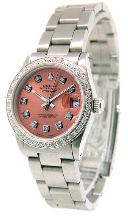 SoldRolex Oyster Perpetual Datejust Midsize Stainless and 14k GoldA nice midsize Rolex Oyster Perpetual Datejust with aftermarket diamond bezel and mother of pearl diamond dial. Watch model 6827 manufactured in 1979. On a 14k and stainless Oyster bracelet also datinSee Sold Price