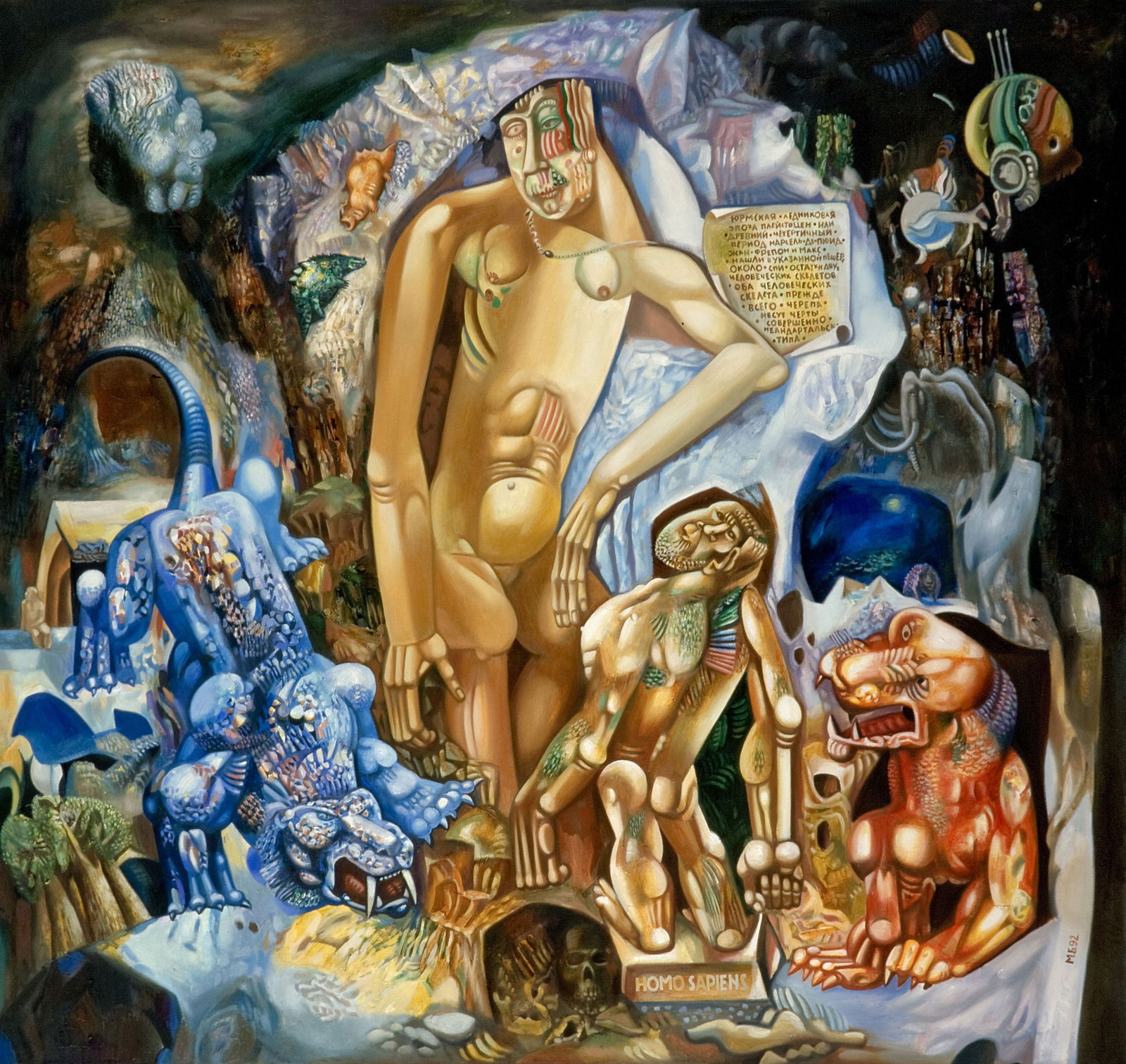 SoldMisha Brusilovsky, Russian (1931 - 2016) OilAttributed to: Misha Brusilovsky, Russian (1931 - 2016) Oil on Canvas, Adam and Eve, Unsigned. 19-1/4" H x 19-1/4" W, frame measures 26" H x 26" W. Domestic Shipping: Third party Min Est. $400.00 MaxSee Sold Price