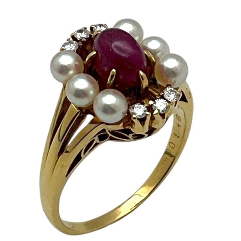 MIKIMOTO PEARL RUBY RING YELLOW GOLD
