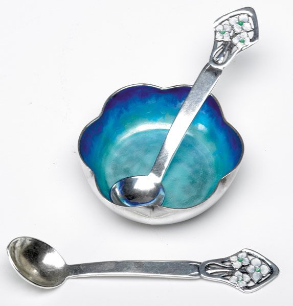 MILDRED WATKINS Sterling salt cellar and 2 spoons