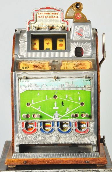 Mills 5¢ 4-Column Front Baseball Slot Machine.