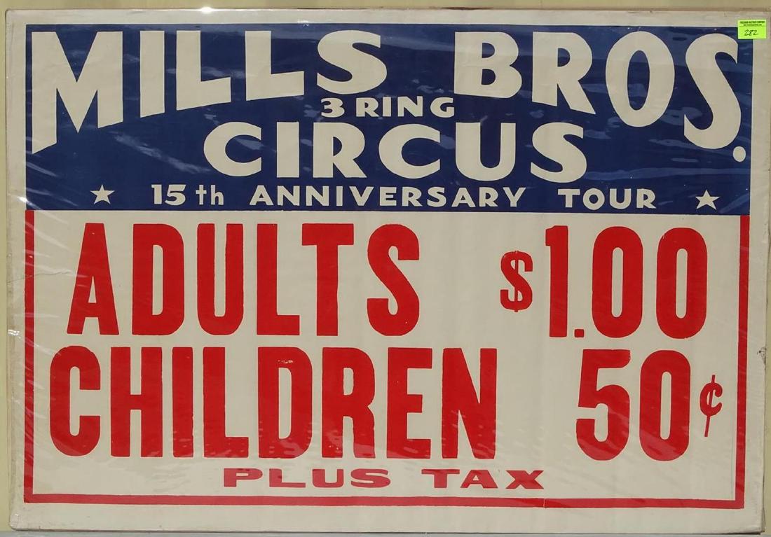 MILLS BROS. 3-RING CIRCUS PRICING POSTER