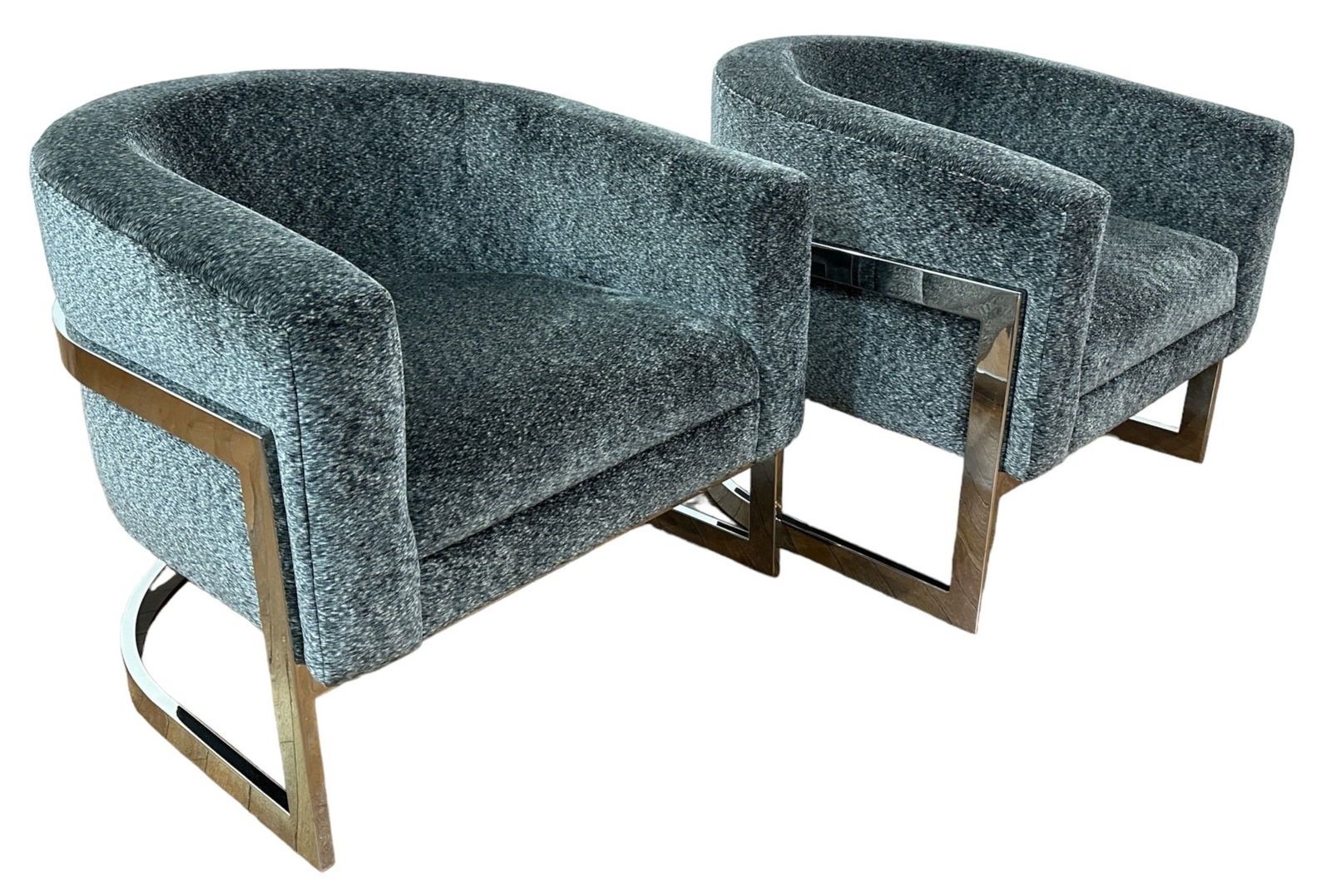 MILO BAUGHMAN Style Chrome Barrel Chairs, Pair
