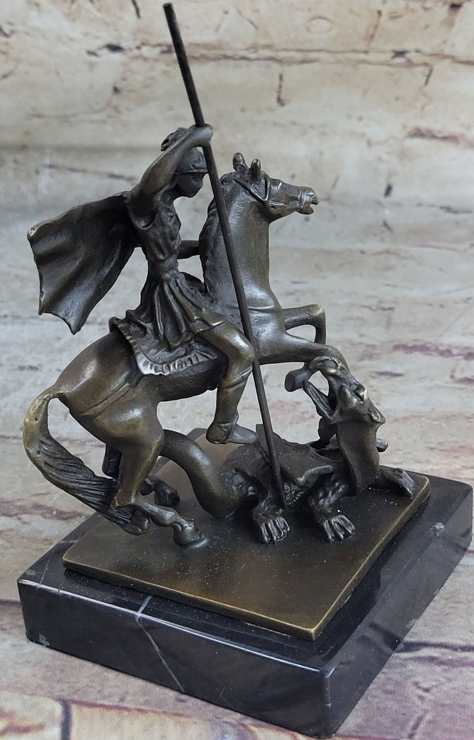 St. George Dragon Slayer Catholic Bronze SculptureFeb 25, 2026Saint George and Dragon Bronze Sculpture1 day LeftSt. George Dragon Slayer Bronze Statue4 days LeftSaint George and Dragon Bronze Sculpture - 9" x 5"Feb 25, 2026Original Bronze Horse and Monkey Sculpture by Milo - 13" x 13"Mar 03, 2026Bronze Mounted Knight by Kamiko – Medieval Warrior Statue on Marble Base – 10.5" x 10"Feb 25, 2026Bronze Mounted Knight by Kamiko – Medieval Warrior Statue on Marble Base – 10.5" x 10"Mar 11, 2026Samurai Wielding Bow on Horse Back Bronze Statue - 9" x 9"Feb 24, 2026Samurai Wielding Bow on Horse Back Bronze Statue - 9" x 9"Feb 26, 2026Dragon Slayer Patron Military Bronze Statue4 days LeftBronze Cowboy SculptureMar 05, 2026Bold Knight and Valiant Steed by Kamiko Inspired Bronze Sculpture - 16" x 15"2 days LeftKnight in Shining Armor Bronze Sculpture - 16.5" x 10.5"2 days LeftKnight in Shining Armor Bronze Sculpture - 16.5" x 10.5"Feb 25, 2026European Warrior on Horseback Bronze Sculpture by Fremiet - 15" x 12"2 days LeftEuropean Warrior on Horseback Bronze Sculpture by Fremiet - 15" x 12"Feb 25, 2026