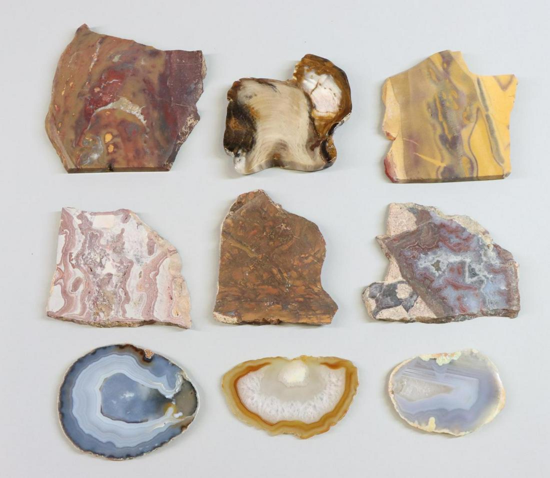 SoldMineral & Fossil Specimen SlabsMineral specimen slab assortment including agate. Fossil slab specimen assortment including crinoid, petrified wood.See Sold Price