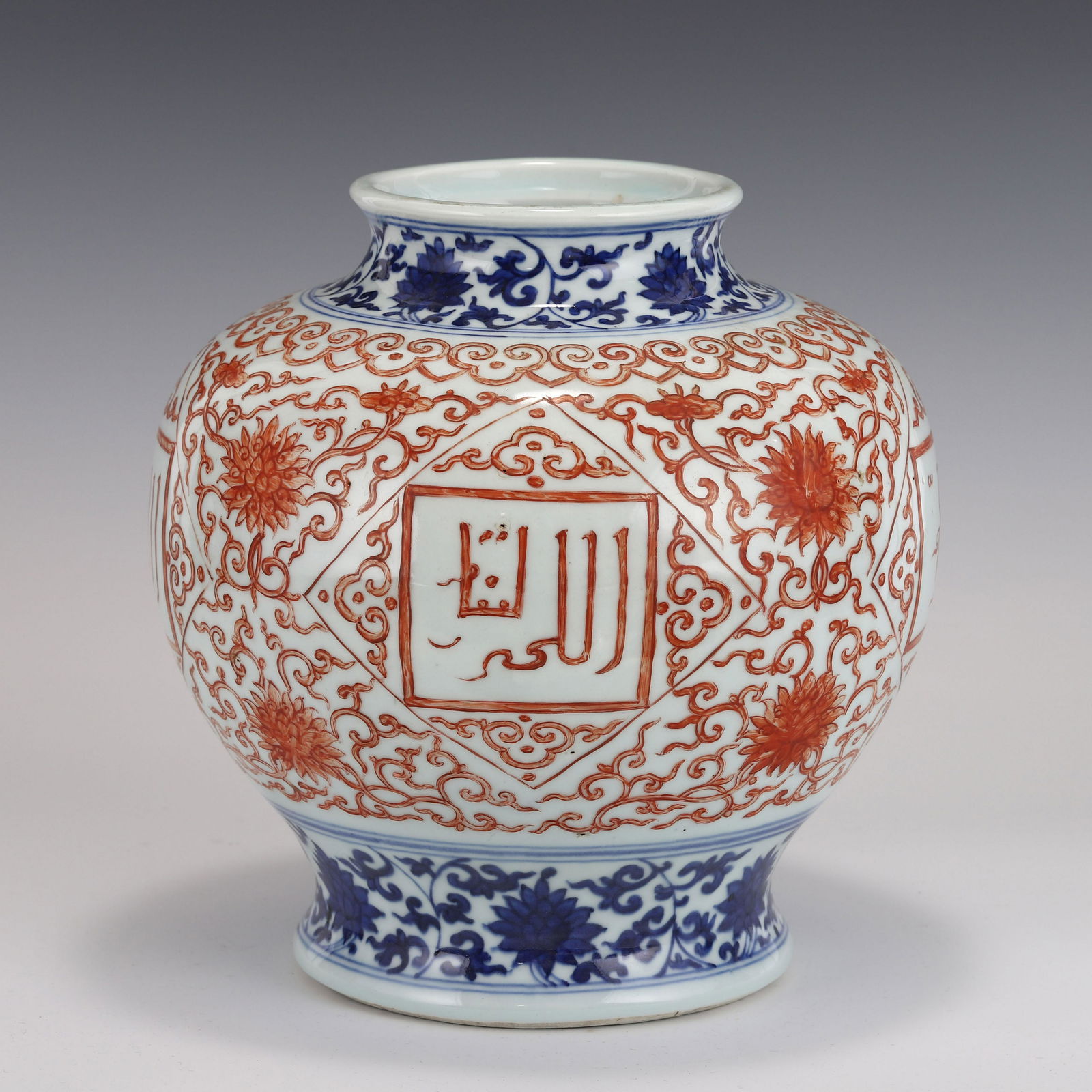 MING BLUE & RED ISLAMIC SCRIPT & FLORAL JAR