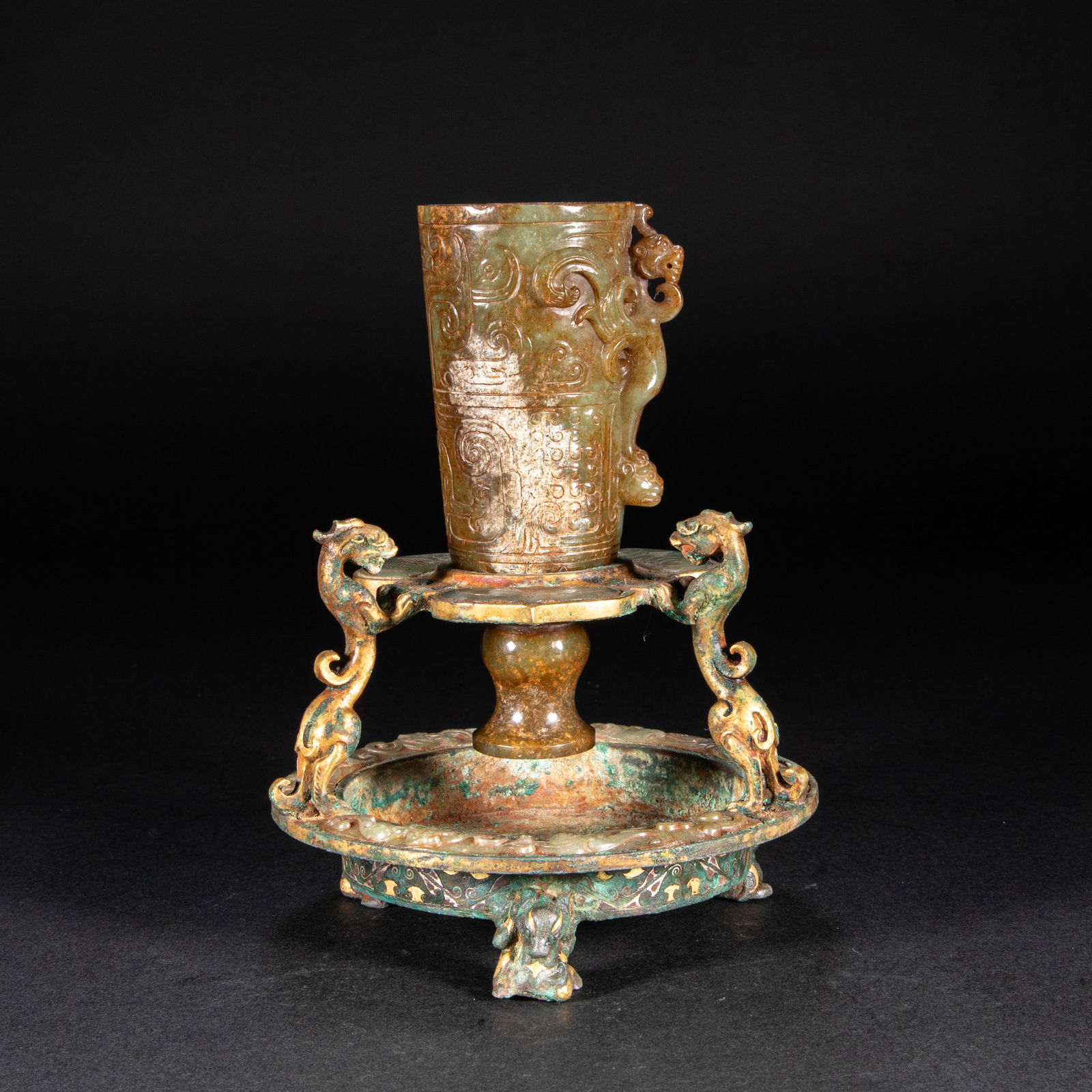 Ming Dynasty before wrong gold and silver base Hetian jade cup