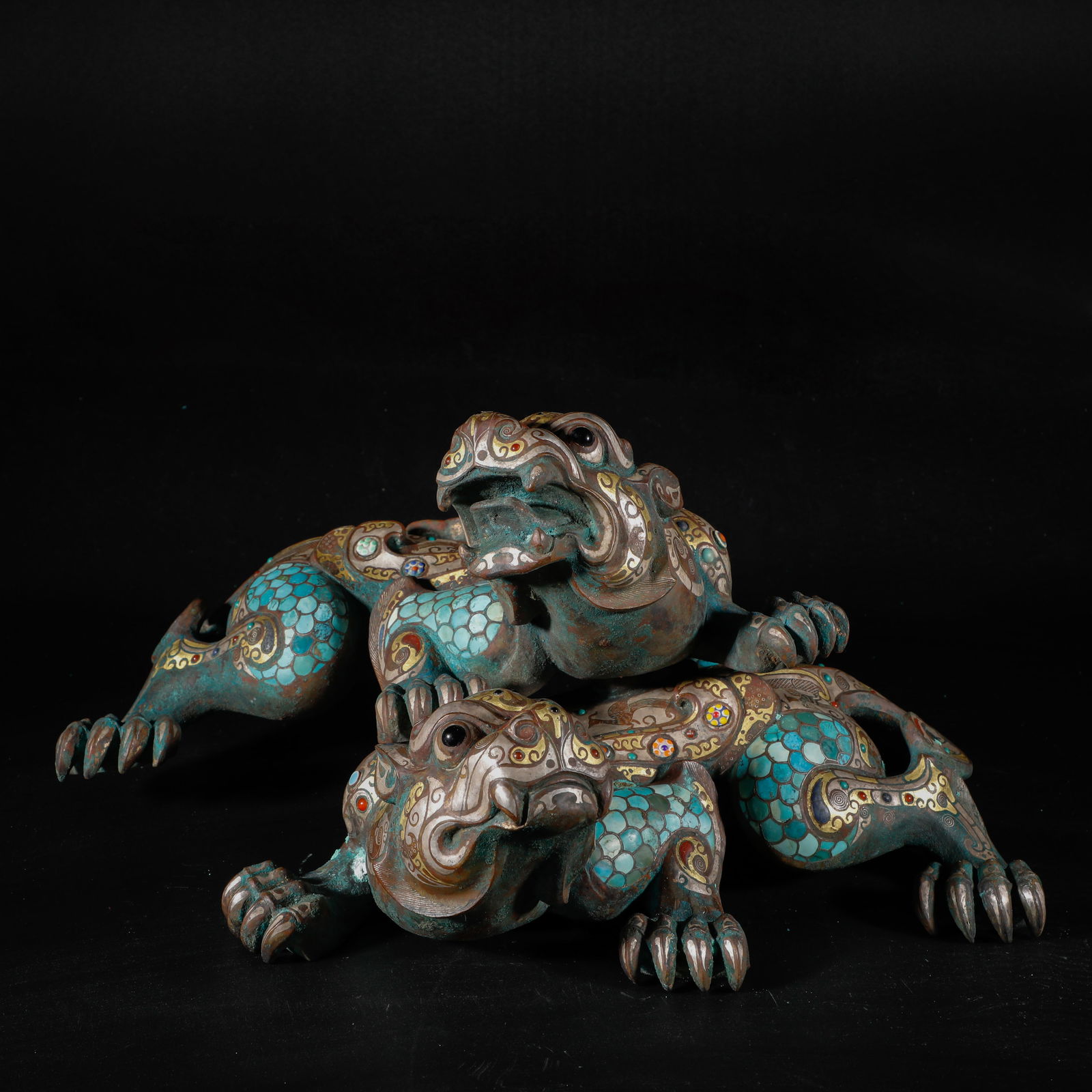 Ming Dynasty before wrong gold and silver inlay pine stone beast
