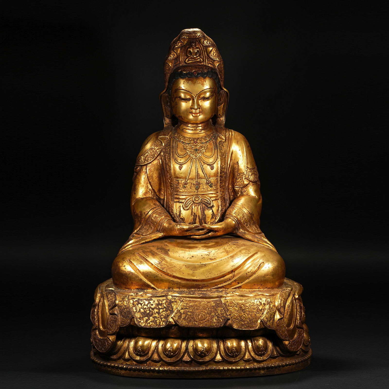 A FINE GILT-BRONZE GUANYIN STATUE