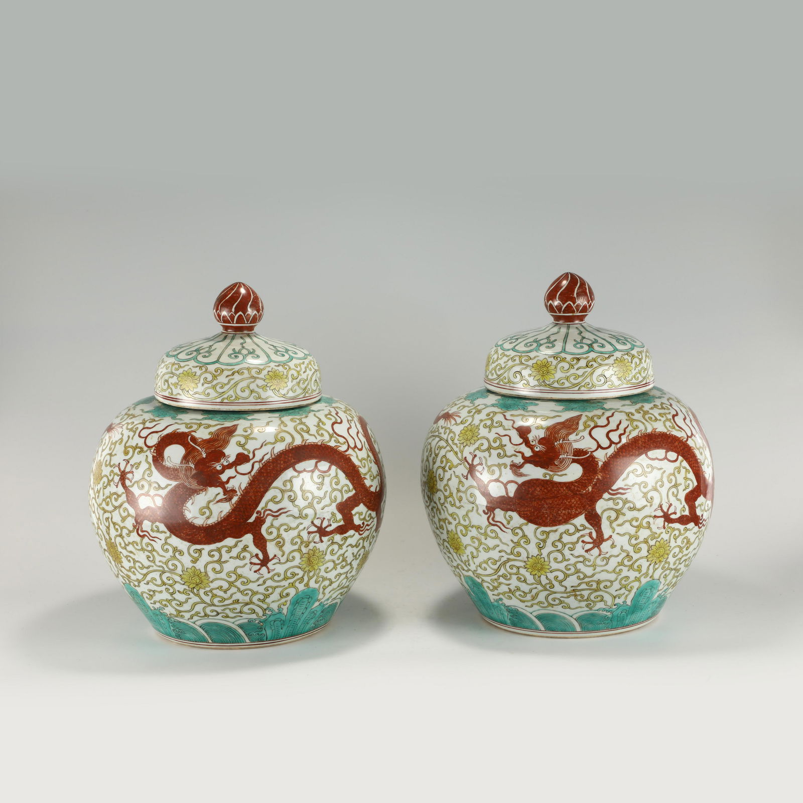 MING JIAJING THREE-COLOR DRAGON PATTERN LIDED JARS