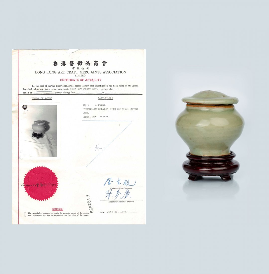 MING "LONG QUAN YAO" JAR WITH PURCHASING CERTIFICATE