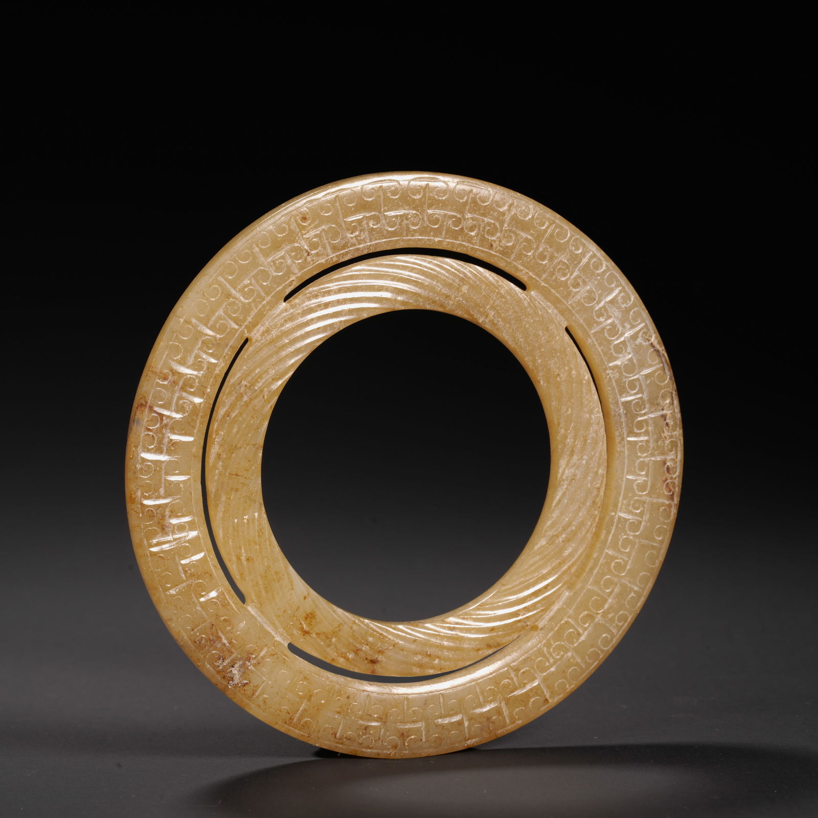 Ming or before ming dynasty Hetian jade double ring Pei