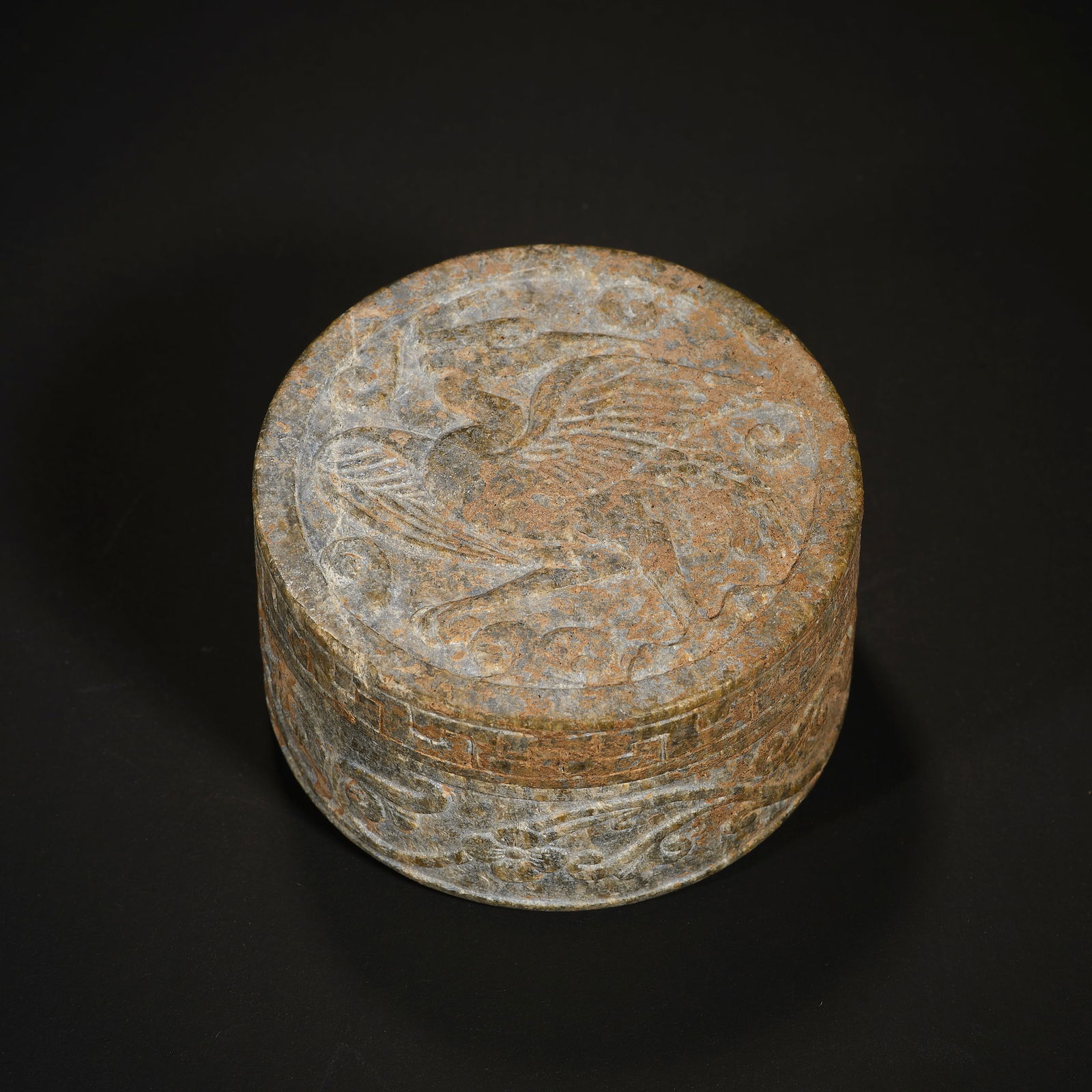 Ming or earlier, ancient jade phoenix lid box