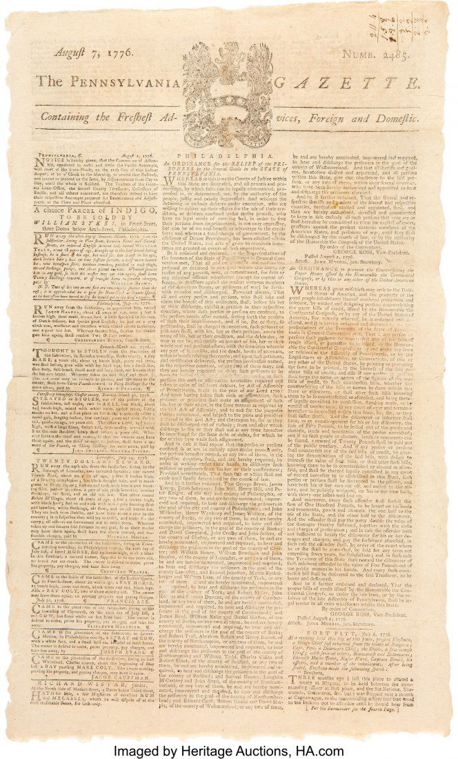 National Atlas and Tuesday morning mail.1757 Letters of Erasmus Darwin on Vapors1752 English Vellum Manuscript Final Agreement1797 ACTS of FIFTH CONGRESS of UNITED STATES of AMERICA in PHILADELPHIA antique1771 Leaf Colonial New Hampshire Act1806 Columbian Centinel Boston Newspaper3 days LeftDocument in French & English, Paris July, 17483 days LeftAMERICAN PANIC OF 1837 HISTORICAL BANKING BROADSIDEMar 06, 2026[Sam Houston]. Address of Gen. Sam Houston, at t4 days LeftAlexander Hamilton Letter Signed. Two pages, 7 34 days LeftDunlap's Daily Advertiser, Philadelphia April 13, 1792 Early American Philadelphia NewspaperMar 29, 2026Columbian Centinel, Massachusetts Federalist, Boston August 9, 1800 Early American NewspaperMar 29, 2026Revolutionary War Soldier's Letter by Elisha Abb4 days LeftState of New Hampshire – Militia Brigade Orders – War of 1812 Era Document – 1815Shenandoah Valley: Officer, Twice POW & EscapedMar 02, 2026Geneva Bible Leaf – Printed by Charles Barker, London, 1585 – Early English Bible Printi