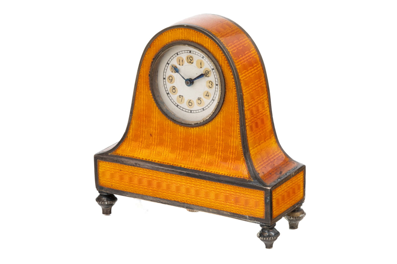 MINIATURE AUSTRIAN SILVER GUILLOCHE ENAMEL CLOCK