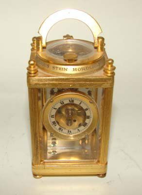 SoldAntique Miniature Carriage ClockAntique Miniature Carriage Clock: nice beveled glass, cute clock.See Sold Price