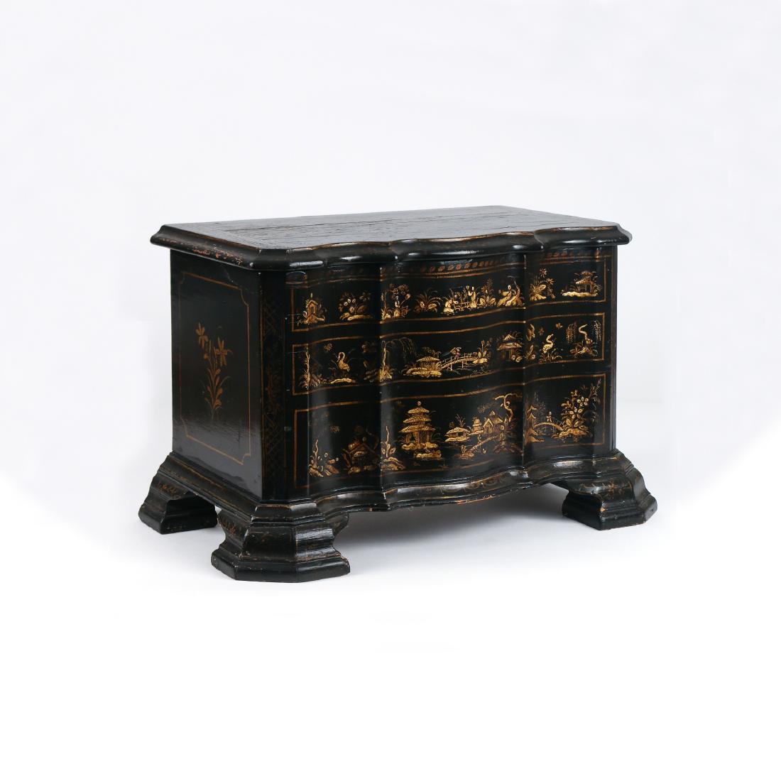 George Nelson (American, 1908-1986) Miniature Chest on Stand, No. 5217, Herman Miller, USA, designedGeorge Nelson (American, 1908-1986) Miniature Chest on Stand, No. 5217, Herman Miller, USA, designed 1952, the present lot 1950s Teak and rosewood veneer, enameled steel, porcelainWith disc manufactur