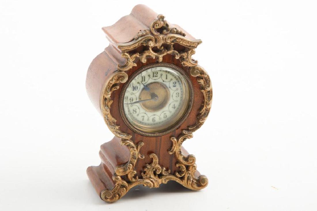 MINIATURE FRENCH MANTEL CLOCK WITH ORMOLU MOUNTS