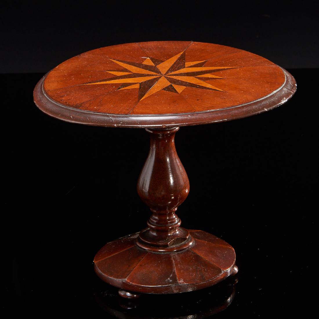 SoldMINIATURE STAR INLAID TABLEEight sided polygon table with inlaid polygon star. Pedestal base with three legs Inventory Code: 1K-181 Provenance: Part of over six-hundred Items consigned from an important Millwood, NY familySee Sold Price
