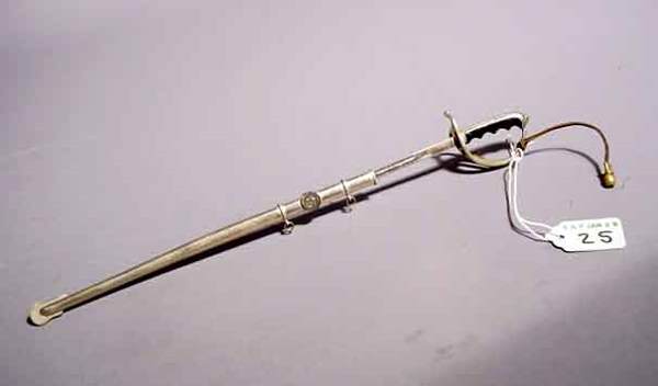 MINIATURE SILVERPLATED CUTLASS WITH SCABBARD, mi
