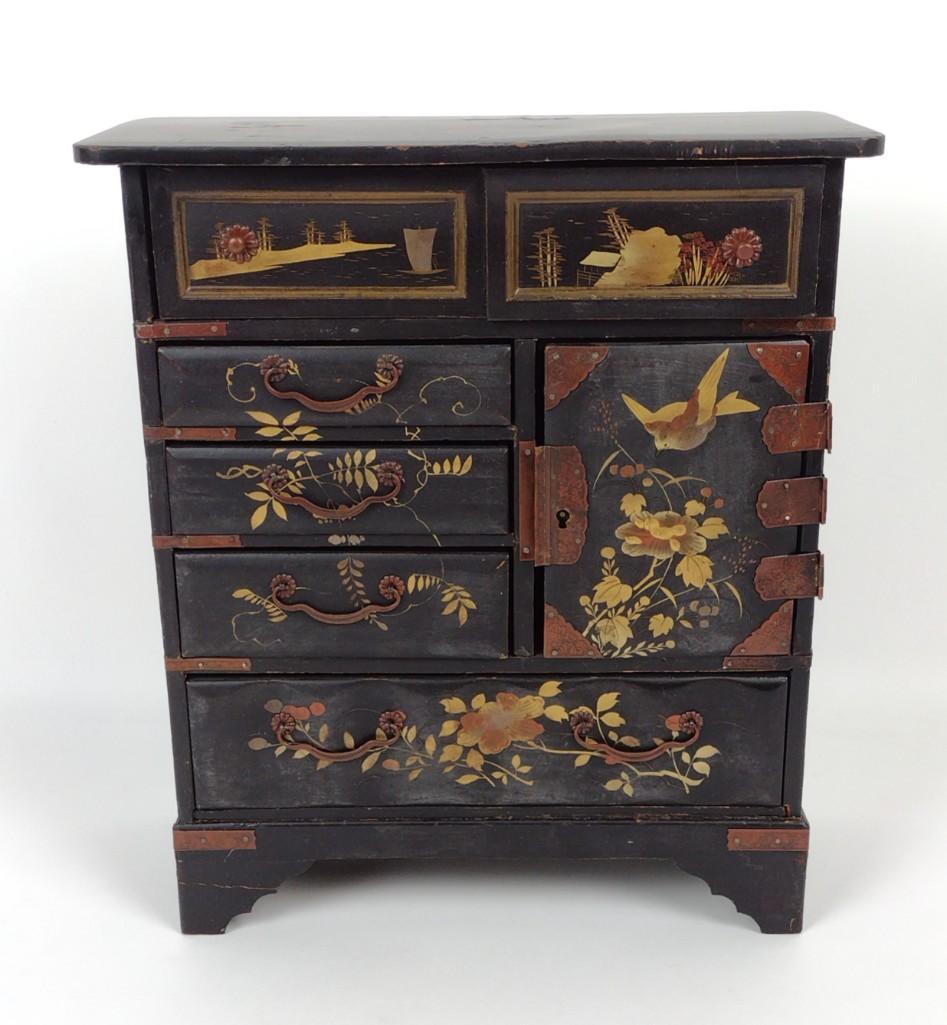 SMALL ORIENTAL DECORATED SIDE CABINET, 1 DRAWER2 days LeftJapanese Isho-Dansu Tansu chest1 hr LeftJapanese Parquetry small Tansu Chest/Cabinet Feb 27, 2026KOREAN METAL-MOUNTED SECRETARY TANSU CHEST, CHRISTIES APPRAISAL1 day LeftKorean ich'ung jang storage chest1 hr LeftONYX TOP FRENCH STYLE CHEST2 days Left6 Drawer Gentleman's Chest3 days LeftChinese Style Lacquered ConsoleFeb 27, 2026SMALL CABINET Japan, Meiji period466 Lots AwayEnglish Mahogany Flip-Top Chest of Drawers, Ca. Late 19th Cent., H 29.5" W 24" Depth 13.75"2 hrs LeftJAPANESE LACQUERED & INLAID TABLE-TOP KODANSU CABINET2 days LeftChinese Ebonized Wood Apothecary Chest, 19th C.Mar 19, 2026Elegant Italian Inlaid 3 Drawer Chest with Leather Top7 days LeftJapanese Isho-Dansu Tansu chest1 hr Left19TH CENTURY FEDERAL STYLE 4 DRAWER CHEST2 days LeftChinese Painted, Gilded & Lacquered Wood Two-Door Jewelry CabinetMar 14, 2026