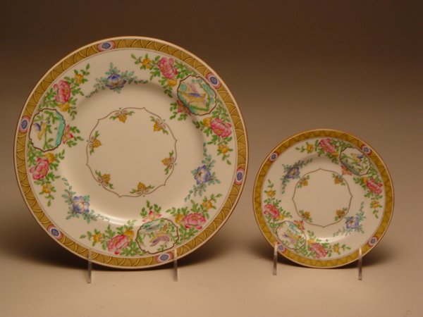 SoldMinton "Ancestral" Pattern Dinner ServiceMinton "Ancestral" Pattern Dinner Service, comprising 11 dinner plates, 11 teacups and saucers, 11 salad plates, 11 Bread plates, 4 demitasse cups and saucers. Dimensions 10.5 in. dia. dinner plates.See Sold Price
