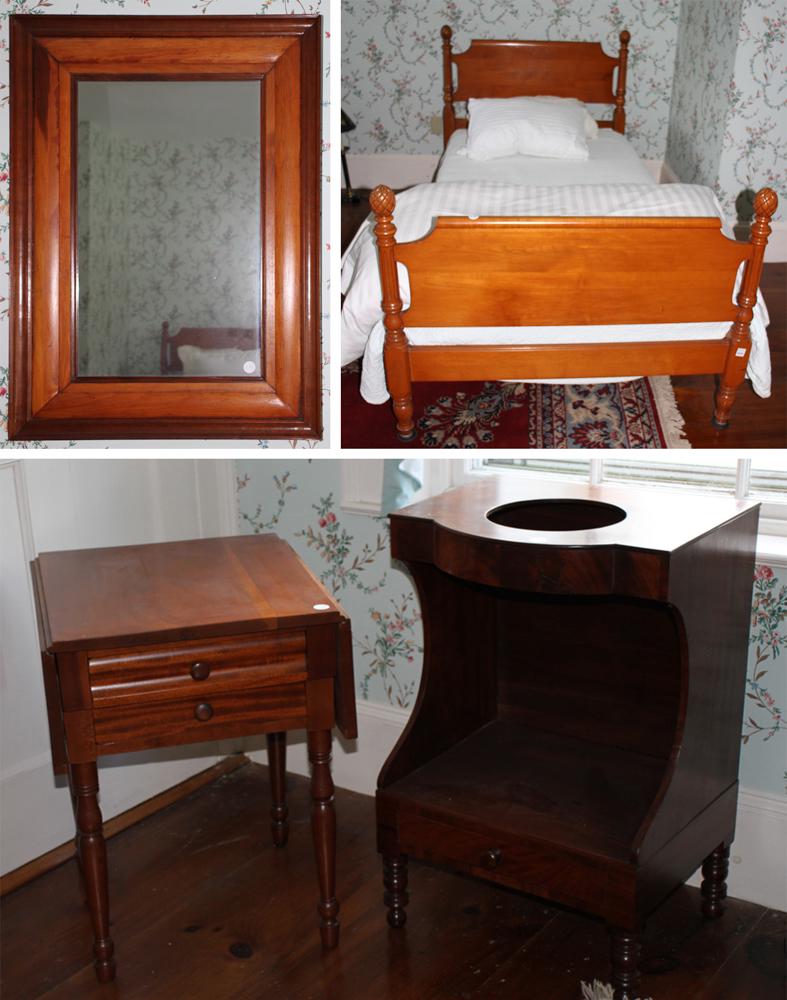 Mirror, Post Bed, Washstand and Dropleaf Stand