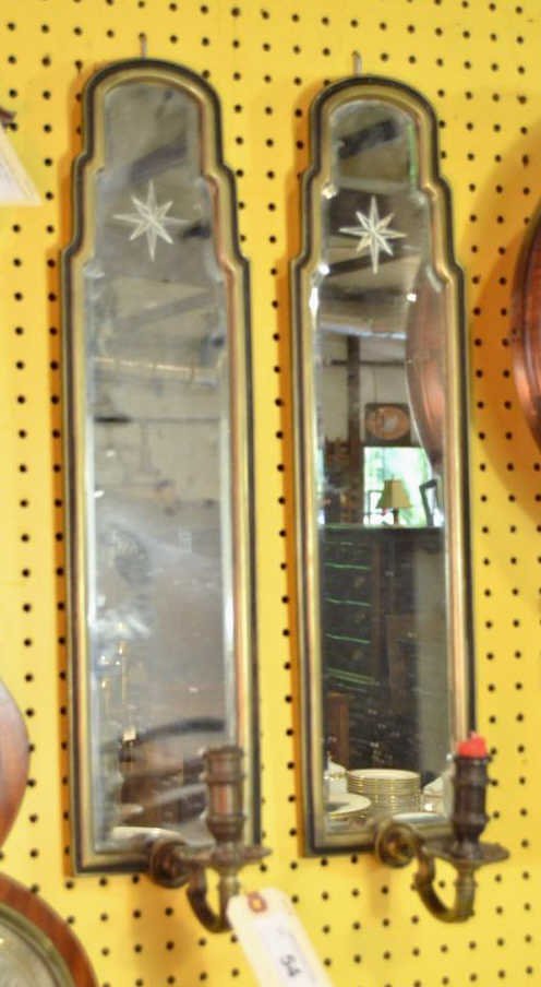 SoldPair Of Mirrored Brass SconcesPair of mirrored back sconces. H 11-1/4" W 10-1/2' D 5-1/2" Condition: Excellent condition. See Sold Price