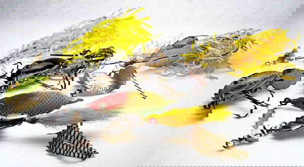 SoldFishing LuresLot misc. early fishing lures and reels including rare Joe Pepper Jersey Minnow on card, Rome N.Y., Bomber Water dog, Supreme Plueger Cub reel, Heddon River Runt, South Bend #550 casting reel.See Sold Price