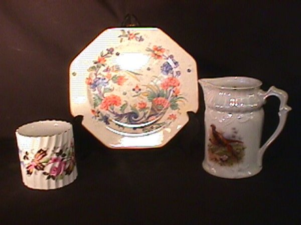 MISC PORCELAIN PLATE CUP PITCHER 3 PCS