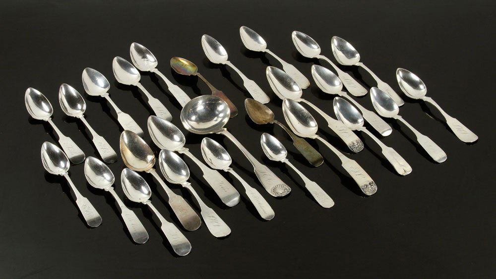 Lot of Coin Silver Spoons aprox 19 troy1 day LeftLot of Silverplate Souvenir SpoonsFeb 12, 2026Assorted Lot of English Sterling Silver Flatware and Utensils6 days LeftLot coin & sterling silver spoons, 18.5 troy, various makers, B.E. Cook, pure coin, Webster & Co,3 days LeftAssorted Lot of Austro-Hungarian .800 Silver Flatware and Serving Pieces6 days Left9 Samuel Bell Coin Silver Spoons6 hrs Left9 Coin Silver Spoons Incl. Alabama1 day LeftAmerican/European Sterling & Coin Spoons4 days LeftGroup of Assorted Coin Silver Serving Spoons5 days Left(20) Solid Coin Silver Spoons, All Are Gorham From Different Time PeriodsFeb 07, 2026(10) Solid Coin Silver Serving Spoons Marked Gorham & CompanyFeb 07, 2026Group of Nine Assorted Sterling Silver Spoons5 days LeftGroup of Silver Serving Spoons and Ladles6 days Left14 East Tennessee Coin Silver Spoons, J.B. Wells1 day LeftSet of Twelve Engraved Coin Silver TeaspoonsFeb 12, 2026(11) Solid Sterling & Coin Silver Grapefruit SpoonsFeb 07, 2026