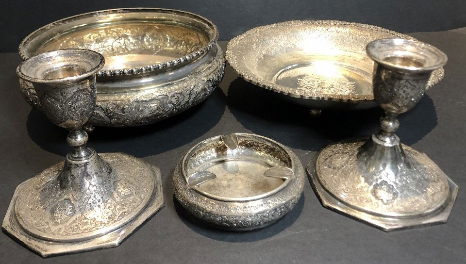 Miscellaneous Persian silver items, 38.95 t.oz