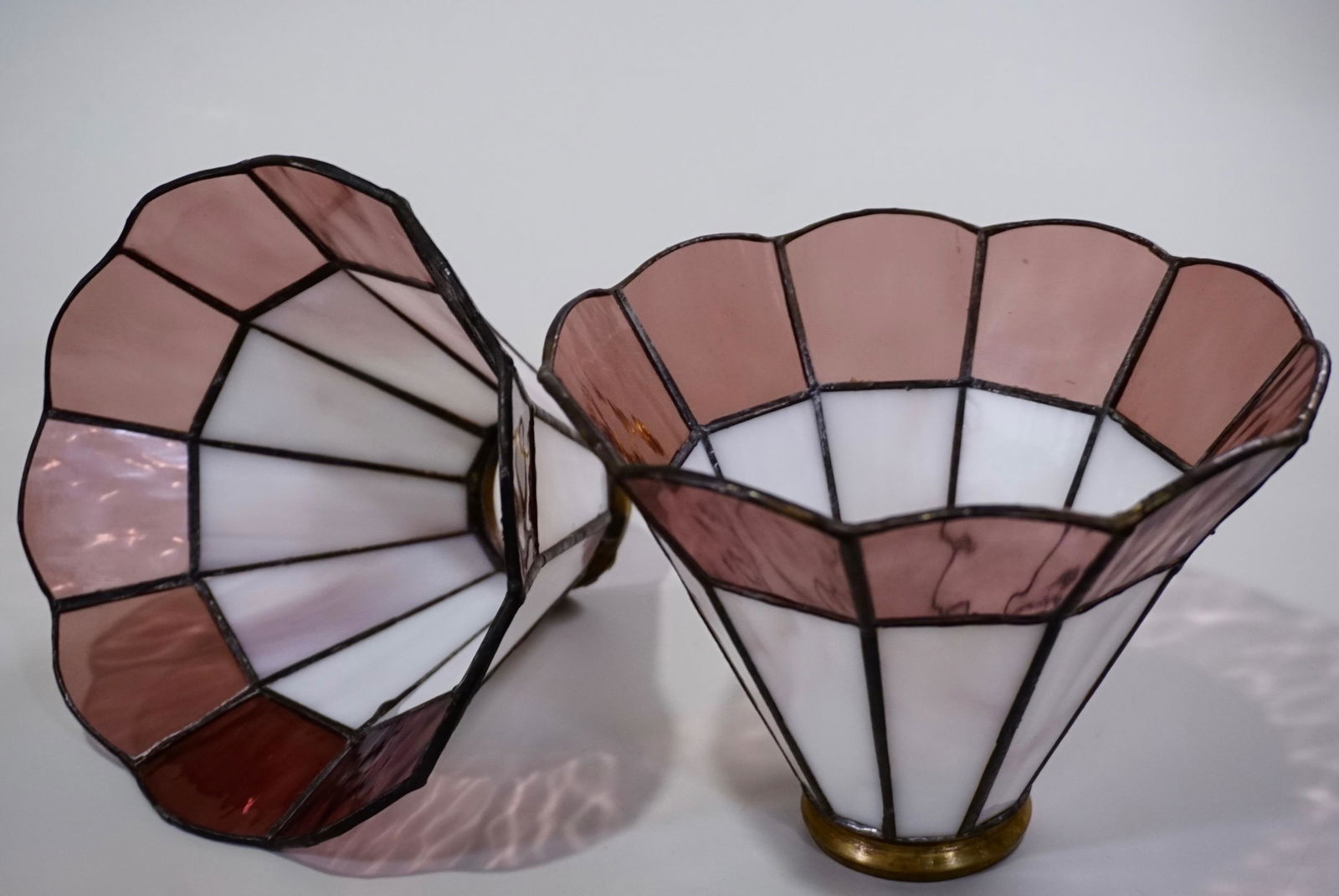Pair Slag Glass Mission Lamp Shade Art & Craft Style