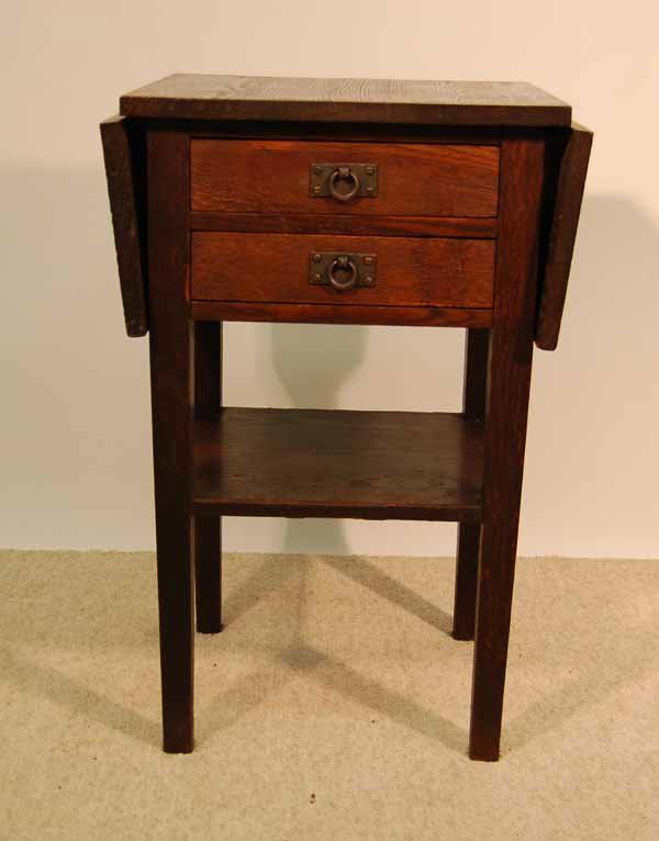 Mission Oak 2 Drawer, Drop Leaf Night Stand.