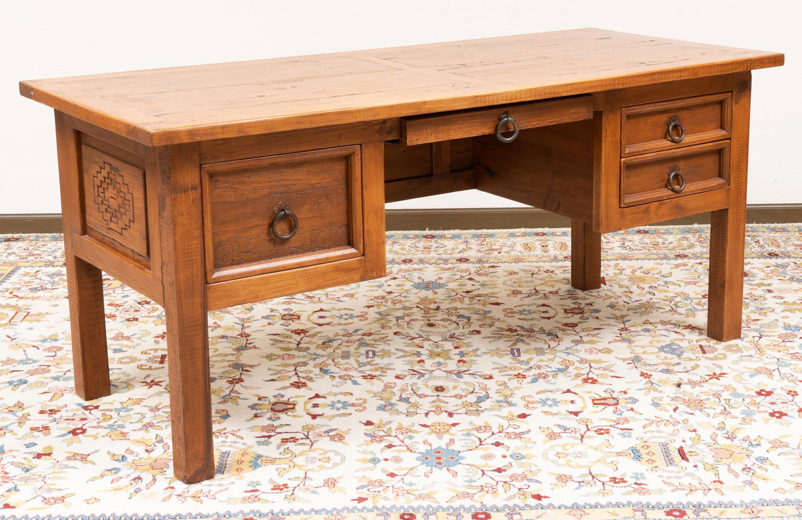 Oversized Wooden Desk work table With Two Drawers and Brass AccentsEstate Inventory Auctions4.3(23)$14 days Left