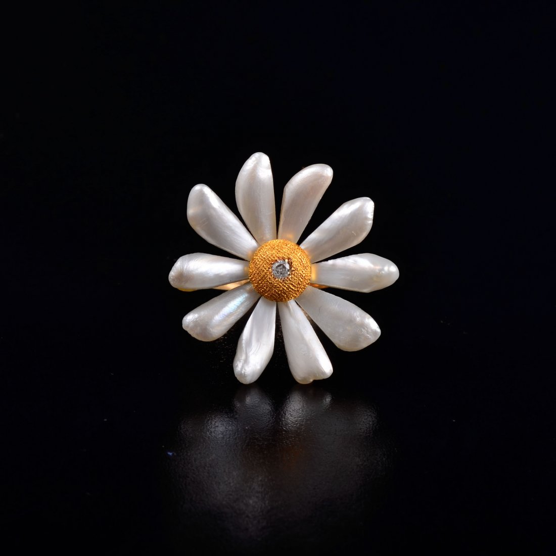 Golden Floral Pearl Ring - Natural Cultured Pearl - Size 6 US - 15 x 14 mm - 3.54 Grams, 48XKThousandPlanet4.5(244)$53 days Left
