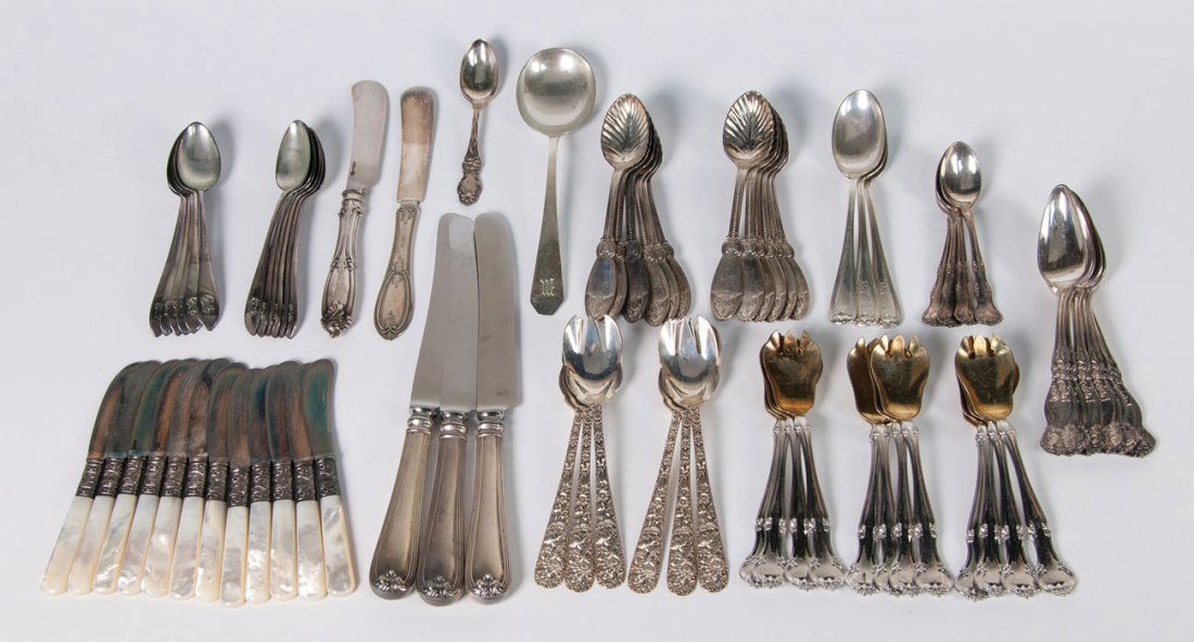 Large Assorted Silver Plate Flatware Lot22 hrs LeftGORHAM AND OTHER STERLING SILVER FLATWARE, LOT OF 25Mar 04, 2026GORHAM AND OTHER STERLING SILVER FLATWARE AND SERVING UTENSILS, LOT OF 14Mar 04, 2026Silver-Plate Flatware & Serving UtensilsMar 08, 2026Lot of Sterling Silver FlatwareMar 07, 2026FLATWARE ASSORTMENT: HOLMES & EDWARDS, WM. ROGERS, LANDERS FRARY & CLARK, & MORE3 days LeftGroup of Assorted American Sterling Flatware and Serving Pieces3 days Left47 pc ASSORTED AMERICAN SILVER FLATWARE,1565g2 days Left51 Pieces Assorted Sterling FlatwareMar 12, 202639 Pieces Assorted Sterling FlatwareMar 12, 202655 Pieces Assorted Sterling FlatwareMar 12, 202623 Pieces Assorted Sterling FlatwareMar 12, 2026Mixed Flatware & Cutlery, Civil War EraMar 08, 2026Group of Charleston Silver FlatwareMar 16, 2026GORHAM AND OTHER STERLING FLATWARE.2 days Left57 Misc. Pieces of Sterling Silver Flatware3 days Left