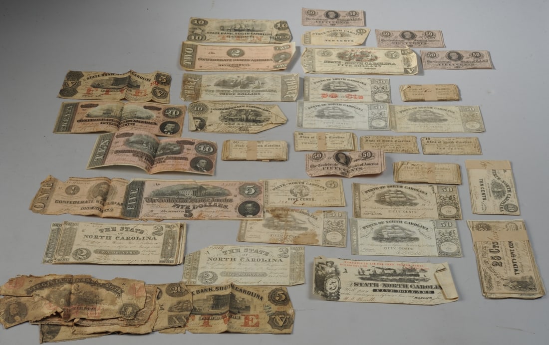UNITED STATES POSTAGE, LOCAL, AND TAX STAMPS, UNCOUNTED LOTMar 04, 2026ASSORTED 19TH CENTURY RAILROAD EPHEMERA / PRINTED MATERIALS, LOT OF 15Mar 05, 2026CIVIL WAR AND OTHER OBSOLETE CURRENCY / NOTES, UNCOUNTED LOTMar 06, 2026CONFEDERATE STATES CIVIL WAR $20 OBSOLETE CURRENCY / NOTES, LOT OF SEVENMar 06, 2026CONFEDERATE STATES CIVIL WAR $10 OBSOLETE CURRENCY / NOTES, LOT OF TENMar 06, 2026CONFEDERATE STATES CIVIL WAR $5 OBSOLETE CURRENCY / NOTES, LOT OF 12Mar 06, 2026CONFEDERATE STATES CIVIL WAR $10 OBSOLETE CURRENCY / NOTES, LOT OF FIVEMar 06, 2026VIRGINIA TREASURY CIVIL WAR $1 OBSOLETE CURRENCY / NOTES, LOT OF 12Mar 06, 2026Mixed World Currency438 Lots AwaySix Obsolete Bank NotesMar 10, 2026North Carolina - CSA Postal covers, Postmaster etc.Mar 02, 2026Confederate States Of America Banknote Currency (6)1 day LeftGroup of Assorted Foreign Currency9 mins LeftVintage International Paper Money Currency, Japanese, German Russian etc. (30)1 day LeftCollection of Early–Mid 20th Century Japanese Banknotes, Mixed Denominations and DesignsMar 25, 2026Group of Assorted Vintage World CurrenciesMar 07, 2026