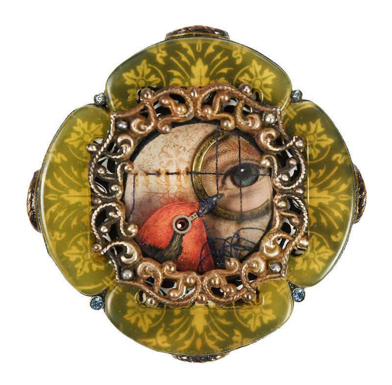 Mixed Media Brooch "Fixation"